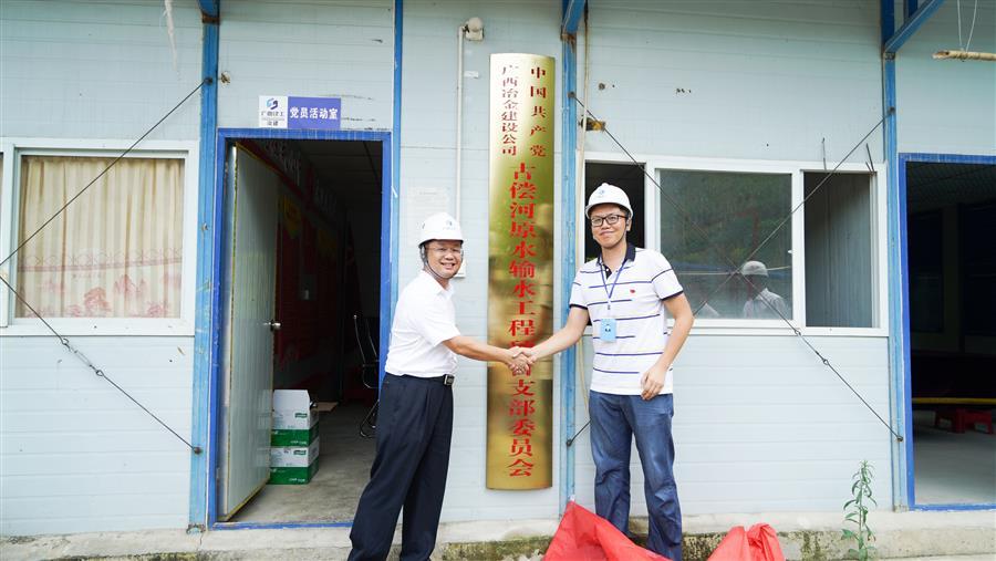 公司黨委書記、董事長覃振華(左)為古償河項目黨支部揭牌