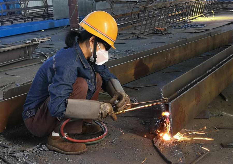 在壓力容器制造廠金屬結(jié)構(gòu)車間里,工人在揮灑汗水,奮戰(zhàn)在崗位上,他們立足崗位,與任務(wù)節(jié)點(diǎn)賽跑,確保按時(shí)完成鋼蓖子制作工作。
