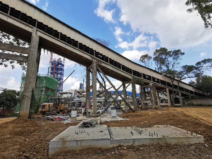 251砂巖長(zhǎng)皮帶機(jī)輸送廊是魚(yú)峰水泥廠(chǎng)唯一一條進(jìn)砂巖破碎料的輸送鏈,是廠(chǎng)內(nèi)生產(chǎn)原料的臍帶。本次接駁任務(wù),業(yè)主要求在七天時(shí)間內(nèi)完成拆除重建工作,是歷次接駁工作中工期最緊、任務(wù)最重的一次接駁工作,各項(xiàng)專(zhuān)業(yè)工作必須需銜接緊密,環(huán)環(huán)相扣。同時(shí),需拆除的八跨斜廊道均為預(yù)制梁板結(jié)構(gòu),高度大,拆除環(huán)境復(fù)雜,廊道下方有已完工的設(shè)備基礎(chǔ)、正在運(yùn)行的皮帶機(jī)輸送廊及高壓電纜溝需要進(jìn)行保護(hù),施工風(fēng)險(xiǎn)高、難度大。