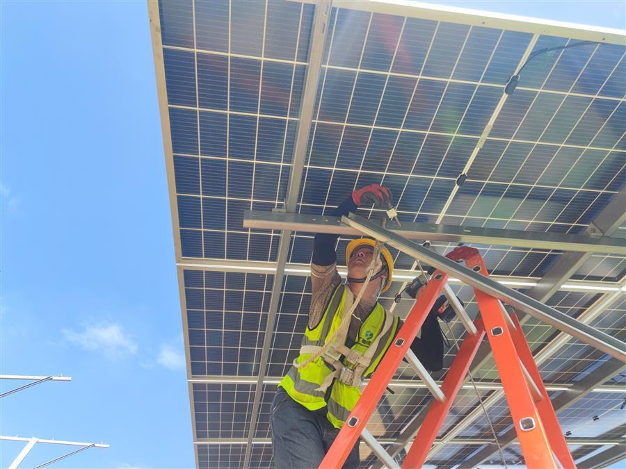 天氣炎熱,項目部及時調(diào)整施工方案,精心組織,科學(xué)調(diào)度,確保大家的身體健康和工程建設(shè)進(jìn)度兩不誤。截至目前,該項目已完成樁基澆筑工作的30.13%,支架和光伏板安裝工作的18%。