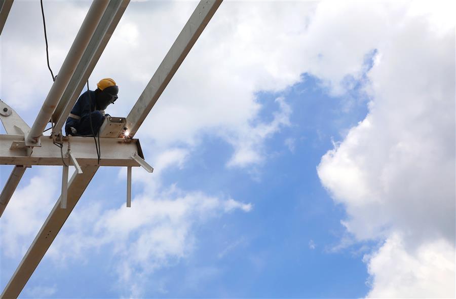 炎炎夏日,擋不住項(xiàng)目推進(jìn)的步伐。7月20日,由冶建公司承建的柳州鐵路港核心區(qū)(西鵝鐵路物流中心)倉(cāng)儲(chǔ)配一體庫(kù)項(xiàng)目施工現(xiàn)場(chǎng),皮膚黝黑的覃五偉在工友的配合下,迅速而準(zhǔn)確地把一塊塊外立面板材安裝到位,與此同時(shí)在該項(xiàng)目現(xiàn)場(chǎng)、不同作業(yè)崗位上的,還有幾十名工人,正在揮汗如雨地工作,大家克服困難、齊心協(xié)力施工,就是為了盡快完成項(xiàng)目的收尾工作,早日交付。