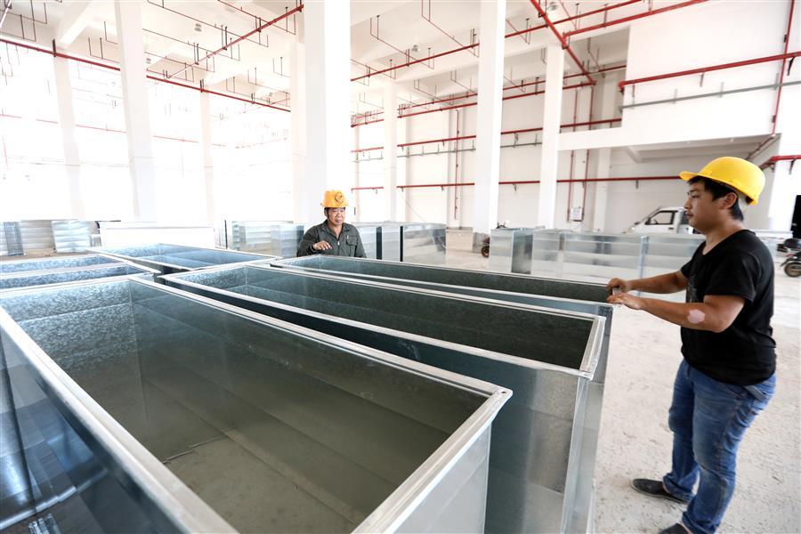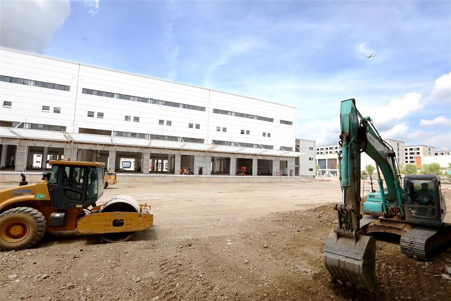 該項(xiàng)目負(fù)責(zé)人莫?jiǎng)ι榻B,倉(cāng)儲(chǔ)配一體庫(kù)主要建設(shè)6棟庫(kù)房,目前項(xiàng)目主體基本建成,正緊張有序收尾。為了加快項(xiàng)目進(jìn)度,項(xiàng)目部在做好防暑降溫、安全施工等保障措施的同時(shí),采取多班組、多工種在不同的庫(kù)房交叉作業(yè),目前工地上有七八個(gè)班組在施工,施工內(nèi)容包括外立面、擋雨棚、通風(fēng)管、地面硬化施工等。