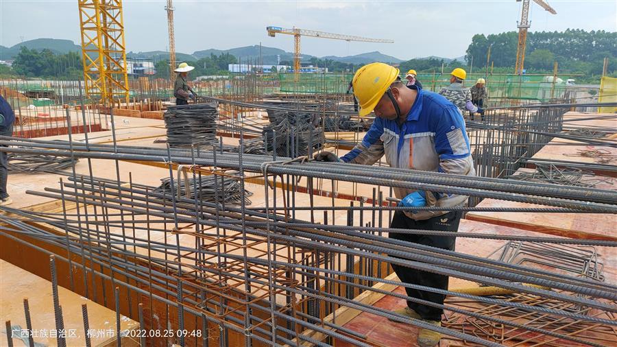 為了確保按時間節(jié)點完成工作量,項目部想方設(shè)法克服各種困難,在做好疫情防控及防暑降溫保障措施工作的同時,認真抓好施工現(xiàn)場的安全和質(zhì)量管理工作。當前,項目每天有200多人的鋼筋班組、木工班組、外架班組、滿堂架班組和混凝土班組在現(xiàn)場有序進行安裝模板、搭設(shè)支架、綁扎鋼筋等工作。