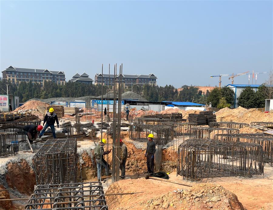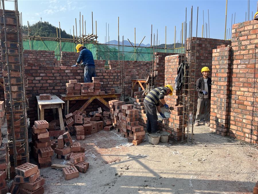 融水苗族自治縣安陲鄉(xiāng)江門村鄉(xiāng)村振興產(chǎn)業(yè)園項目總建筑面積約8420平方米。項目建設內(nèi)容包括:園區(qū)標準廠房建設及道路工程、場地平整、雨水、污水、給水、室外電氣及室外綠化工程;廠房結構形式為框架結構。目前,項目1#廠房二層磚墻砌磚40%;4#、5#廠房外墻磚砌筑90%;7#廠房主體結構屋面鋼筋綁扎完成。