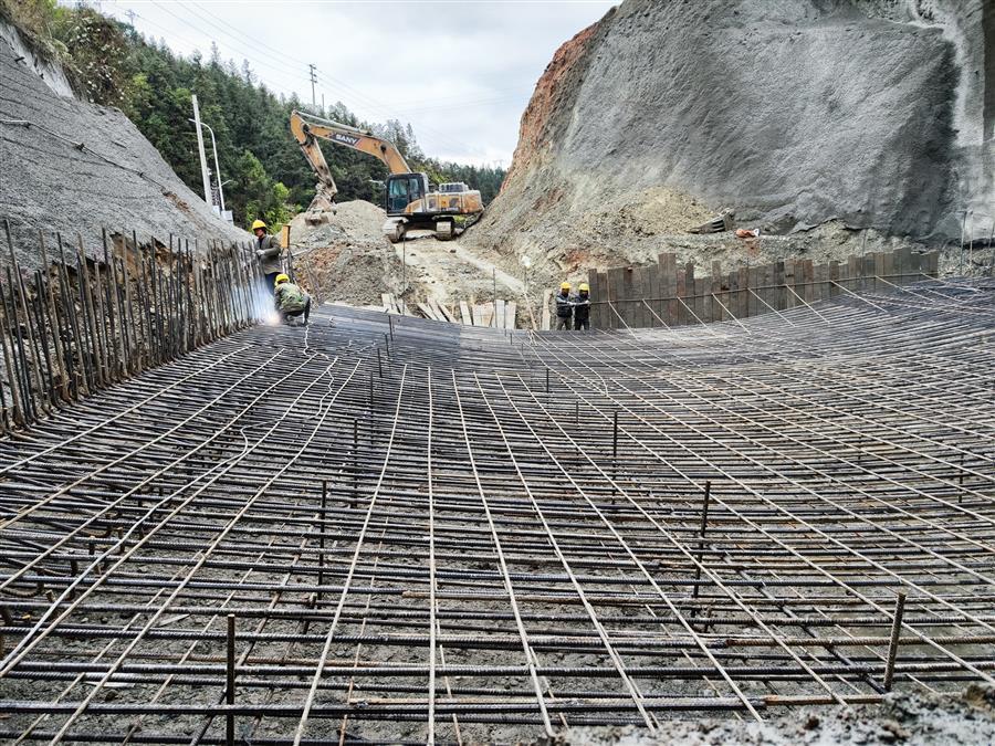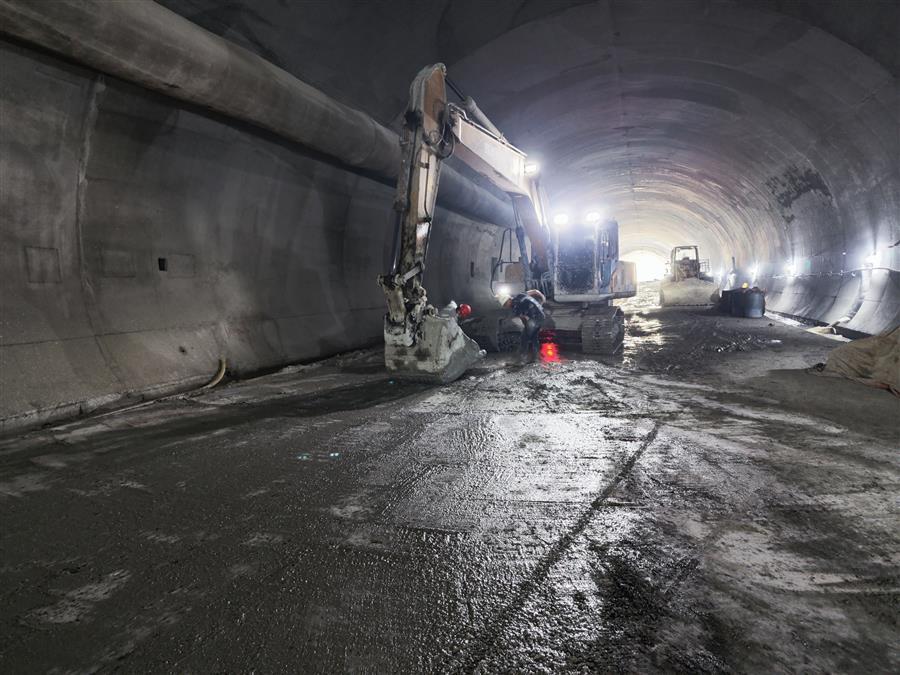 在施工現(xiàn)場,機器轟鳴,挖掘機正在對隧道明洞部分的土方進行開挖,出渣車有序作業(yè)外運渣土;工人們正有條不紊地焊接、搭建地連墻鋼筋籠;在隧道深處,一臺挖掘機在操作人員的操控下,正揮動著“手臂”,配合著工人在對隧道路面做清理。“為加快項目施工進度,我們采取人員倒班、設備不停,白天晚上不間斷施工?!表椖拷?jīng)理介紹說,目前隧道工程已全面貫通,爭取在春節(jié)前完成仰拱和墻供二襯砼澆筑。