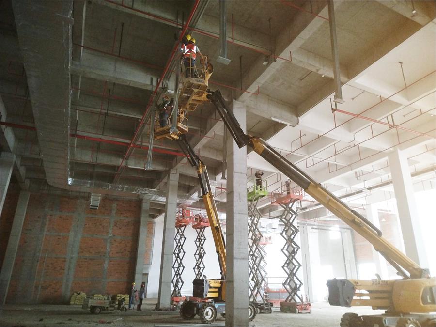 雨天巧干、晴天大干。項目部制定周密、科學的施工計劃,提前做好應(yīng)急預案,每天根據(jù)天氣變化對工作時序、應(yīng)對措施、安全保障等情況進行逐一落實,充分利用好天氣窗口期,因時制宜,在保障安全作業(yè)的前提下,推進穿插施工,盡一切可能搶抓進度,將攻堅再加速。目前,各樓棟水電消防完成90%,外墻膩子和外墻漆施工完成過半,窗玻璃安裝完成60%,內(nèi)墻膩子完成80%;生產(chǎn)車間真石漆施工完成60%,49-61軸鋁板幕墻安裝完成15%,49-61軸二層金剛砂地坪完成30%,屋面卷材防水完成90%,屋面防水砼保護層完成60%;宿舍樓外墻裝飾線條完成80%,綜合樓外墻裝飾線條完成70%;室外管網(wǎng)路基施工完成40%。項目累計完成施工產(chǎn)值4.2億元,完成合同造價的82%。