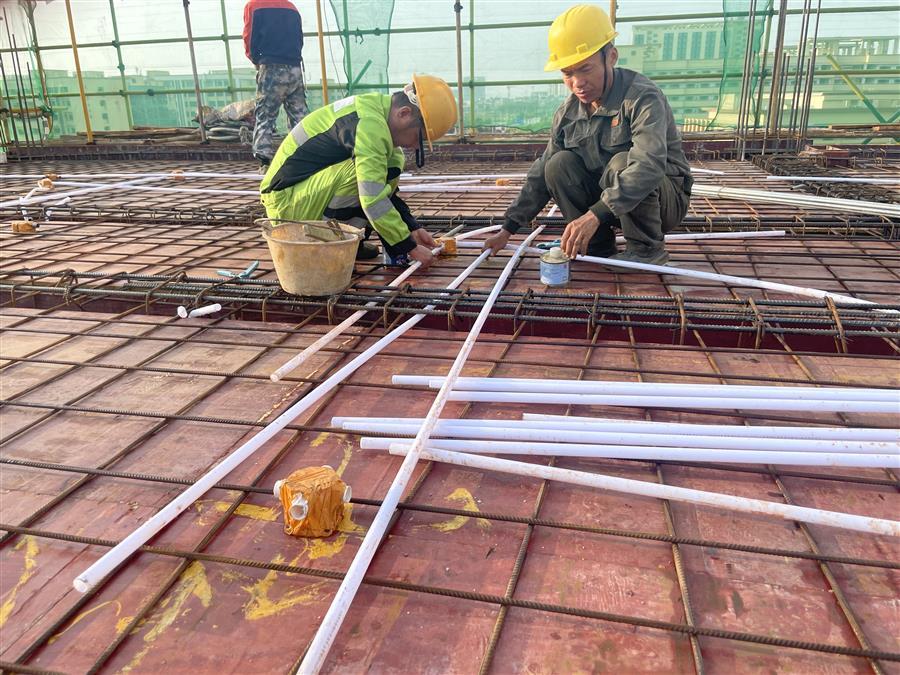 中秋將至,天氣依然炎熱。冶建公司桂海分公司承建的中國(guó)移動(dòng)廣西分公司南寧武鳴區(qū)分公司生產(chǎn)調(diào)度用房工程項(xiàng)目施工現(xiàn)場(chǎng)一派熱火朝天的景象,建設(shè)者們各司其職,切割鋼筋、搬運(yùn)材料、綁扎樓面鋼筋等,全力沖刺工程建設(shè)節(jié)點(diǎn)。