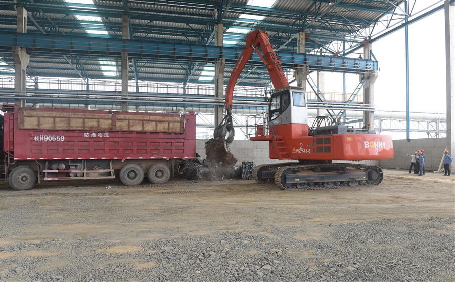儀式上,3000噸一類沖壓片包塊廢鋼在廣西鋼鐵1萬噸碼頭卸船,隨后順利進(jìn)入設(shè)備安裝分公司承建的防城港鋼鐵基地項目(一期)廢鋼處理系統(tǒng)金屬材料加工配送中心廠房及公輔設(shè)施建設(shè)項目1#庫廠房,在場所有人見證了料場啟用。3000噸一類沖壓片包塊廢鋼順利進(jìn)場,這意味著該項目正式啟用,并取得了階段性勝利。