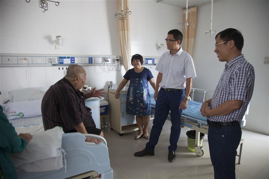 在走訪慰問過程中,慰問組首先來到了柳鋼醫(yī)院住院部探望因腦出血而住院的職工李杰。在病房里,處于術(shù)后恢復(fù)期的李杰同志已經(jīng)能夠端坐在病床上,并與歐總經(jīng)理親切握手、正常交流,歐總經(jīng)理表示非常欣慰,他關(guān)切地詢問了李杰同志的身體狀況,得知其恢復(fù)良好,放寬了心,他向李杰同志叮囑道:“一定要注意清淡飲食,身體是革命的本錢,要保重好身體,注意休息,術(shù)后身體便利了一定要多走走,多鍛煉?!绷胃笨偨?jīng)理也表示道:“公司一直關(guān)注著職工的生活情況,我們有時(shí)間一定會(huì)再常來看你?!?/span>