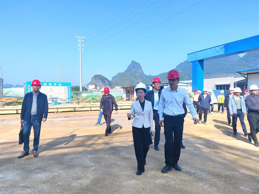 10月31日,桂林市陽朔縣縣長黃小雪帶隊(duì)到冶建公司桂鴻分公司承建的陽朔縣集中工業(yè)園福利園(一期)A-05地塊基礎(chǔ)建設(shè)項(xiàng)目開展調(diào)研指導(dǎo)工作。