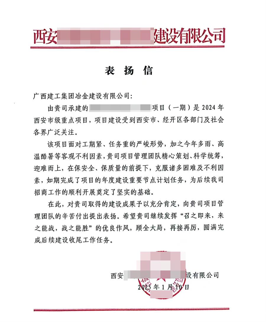 新年伊始,喜訊傳來!近日,冶建公司收到遠(yuǎn)在千里之外的項目業(yè)主寄來一封《表揚(yáng)信》,信中對冶建基礎(chǔ)分公司承建項目的管理水平高、建設(shè)速度快、工程質(zhì)量優(yōu)“點(diǎn)贊”,向全體項目管理人員的辛苦付出提出表揚(yáng),對公司取得的建設(shè)成果予以充分肯定。