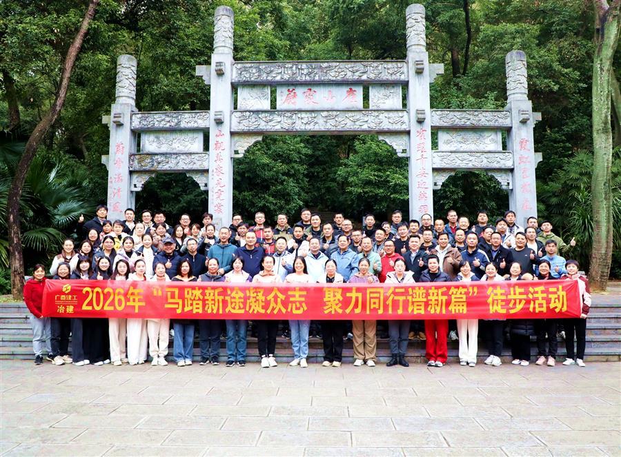 新年伊始,萬(wàn)象更新。1月4日,冶建公司以一場(chǎng)主題為“馬踏新途凝眾志,聚力同行譜新篇”迎新徒步活動(dòng),正式拉開(kāi)2026年奮斗征程的序幕。公司董事長(zhǎng)、黨委書(shū)記覃振華,總經(jīng)理、黨委副書(shū)記蒙勝益,在家領(lǐng)導(dǎo)班子成員賴(lài)海標(biāo)、廖立波、韋克雪、葉益華帶領(lǐng)本部職工闊步前行。