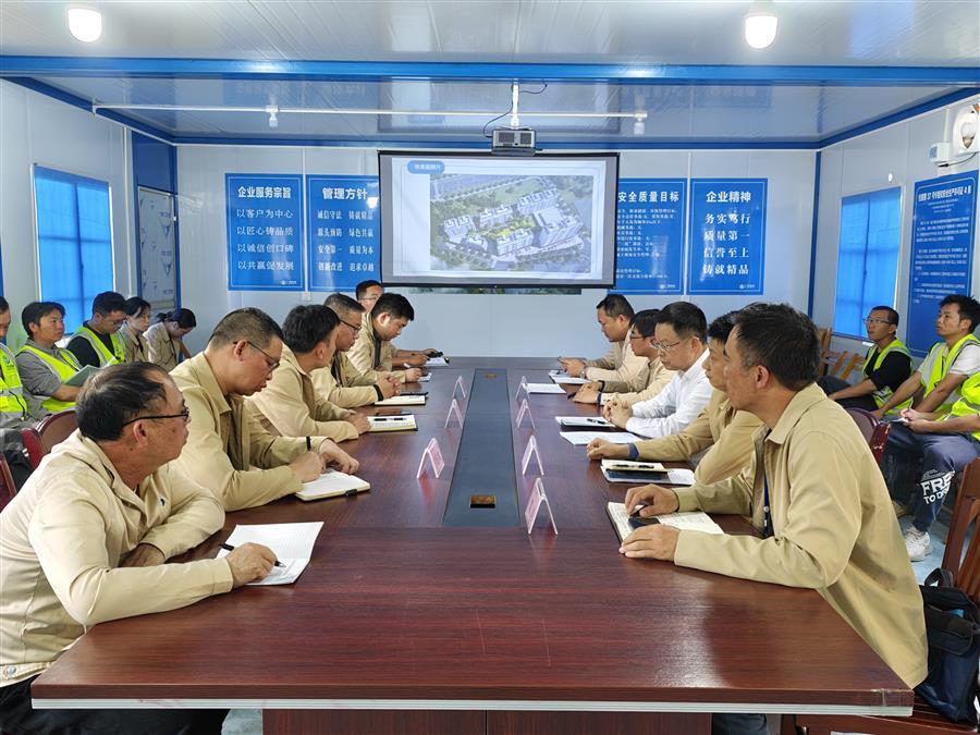 賴海標(biāo)一行深入項目一線,實地查看施工現(xiàn)場,認真聽取項目情況匯報,詳細檢查項目安全管理、質(zhì)量管控等內(nèi)容,并提出指導(dǎo)性意見和建議。就項目下一步工作,他提出四點要求。一是周密部署抓好復(fù)工復(fù)產(chǎn)。要以本次綜合檢查為契機,對檢查組反饋的問題建立臺賬、逐項銷號,從嚴從實抓好整改落實。進一步細化復(fù)工復(fù)產(chǎn)工作方案,統(tǒng)籌整合人員、物資、設(shè)備等各類資源,緊盯深基坑、高支模等重點環(huán)節(jié)和關(guān)鍵部位,精準(zhǔn)施策、科學(xué)調(diào)度,全力保障項目安全有序復(fù)工。二是壓實責(zé)任抓好安全生產(chǎn)。要牢固樹立“安全無小事、責(zé)任大于天”的意識,嚴格落實安全生產(chǎn)責(zé)任制,常態(tài)化開展安全隱患“拉網(wǎng)式”排查;抓實抓細安全教育培訓(xùn)、應(yīng)急演練等防范措施,堅決遏制各類安全事故發(fā)生,確保項目安全生產(chǎn)形勢持續(xù)穩(wěn)定。三是緊盯目標(biāo)任務(wù)抓施工生產(chǎn)。要緊緊圍繞公司年度經(jīng)營生產(chǎn)目標(biāo),倒排工期、掛圖作戰(zhàn),精心組織開展勞動競賽活動,充分調(diào)動參建人員積極性和主動性,在保障安全和質(zhì)量的前提下,全力提升施工效率,確保按期完成各節(jié)點任務(wù),為公司實現(xiàn)上半年生產(chǎn)經(jīng)營“時間過半、任務(wù)過半”目標(biāo)提供有力支撐。四是抓好項目質(zhì)量打造精品。要嚴格落實項目全過程質(zhì)量管控,從嚴把好材料進場檢驗、工序交接驗收等各個環(huán)節(jié),規(guī)范做好工程技術(shù)資料的收集、整理和歸檔工作,全面提升項目建設(shè)品質(zhì),努力打造經(jīng)得起檢驗的精品工程、標(biāo)桿工程。