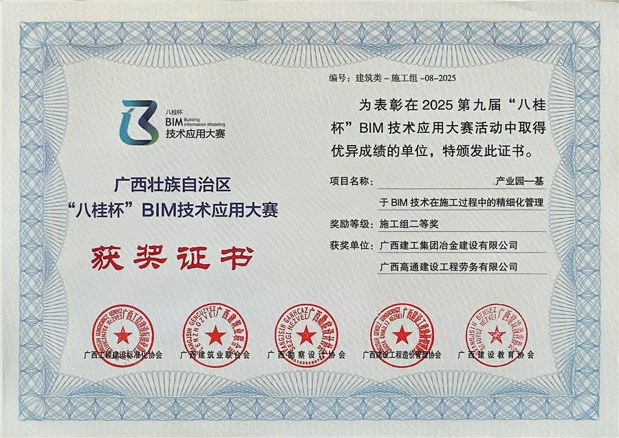 3月20日,2026年全區(qū)建筑信息模型(BIM)應用交流會暨第九屆“八桂杯”BIM技術(shù)應用大賽頒獎在柳州舉行。冶建公司基礎分公司申報的一課題,憑借出色的BIM技術(shù)應用水平與管理成效,榮獲施工組建筑類二等獎。