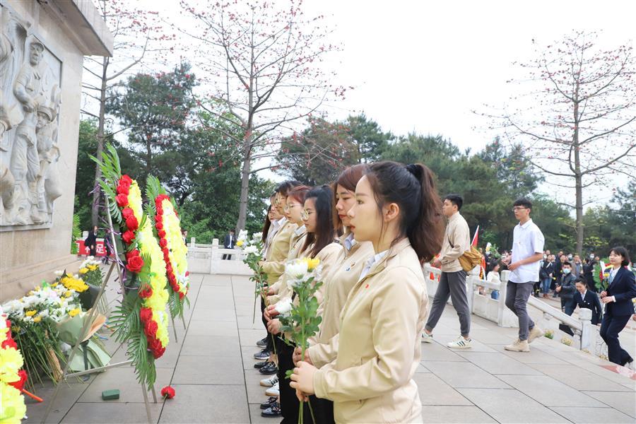 宣誓后,團(tuán)員青年在烈士陵園開展《學(xué)史愛(ài)國(guó) 青年力行》主題微團(tuán)課,回顧中國(guó)共產(chǎn)黨帶領(lǐng)人民群眾浴血奮戰(zhàn)、進(jìn)行艱苦卓絕斗爭(zhēng)的革命歷程,追憶崢嶸歲月,緬懷革命英烈,致敬百年征程。隨后,團(tuán)員青年有序來(lái)到烈士紀(jì)念碑基座前,瞻仰紀(jì)念碑,將一朵朵鮮花整齊擺放在紀(jì)念碑基座上,向烈士致以崇高的敬意。