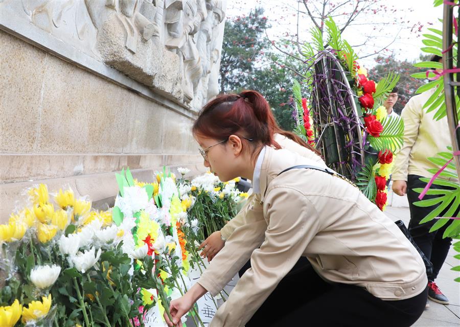 柳州烈士陵園里寧?kù)o肅穆,團(tuán)員青年懷著崇敬的心情邁著堅(jiān)定步伐,沿著陵園臺(tái)階緩緩行進(jìn)至雄偉莊嚴(yán)的烈士紀(jì)念碑前,向革命烈士低頭默哀,緬懷先烈的豐功偉績(jī)。