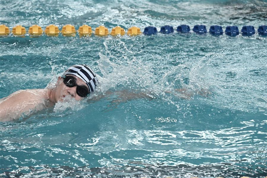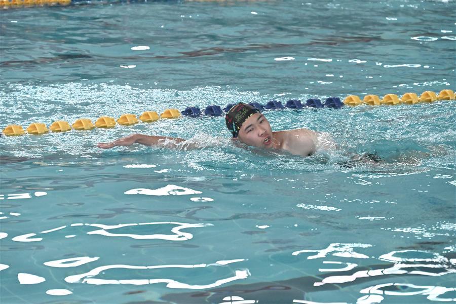 決賽環(huán)節(jié),運動員們紛紛向最后的勝利發(fā)起沖刺,泳道內(nèi)大家激情澎湃、斗志昂揚,泳池旁啦啦隊的加油助威聲此起彼伏,比賽的氣氛被推至高潮。